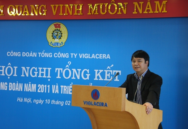 Sáng ngày 10/02/2012, trong không khí đón Xuân năm mới, Công đoàn Tổng công ty Viglacera đã tổ chức Hội nghị Báo cáo kết quả hoạt động Công đoàn năm 2011 và Phương hướng nhiệm vụ công tác năm 2012. Về dự Hội nghị có Đồng chí Đặng Hữu Hoàn – Phó chủ tịch thường trực Công đoàn Xây dựng Việt Nam, Đồng chí Luyện Công Minh – Phó bí thư Đảng ủy, Chủ tịch HĐTV Tổng công ty, cùng hơn 100 đồng chí trong Ban chấp hành Công đoàn Tổng công ty, các đồng chí là Chủ tịch, phó Chủ tịch, Chủ nhiệm UBKT và Trưởng ban nữ công các công đoàn cơ sở tham dự đông đủ.