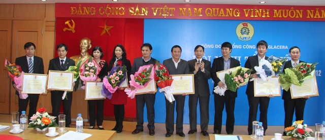 Trao cờ thi đua, bằng khen của Tổng liên đoàn Lao động Việt Nam, Công đoàn Xây dựng Việt Nam cho các tập thể, cá nhân đạt thành tích xuất sắc năm 2011