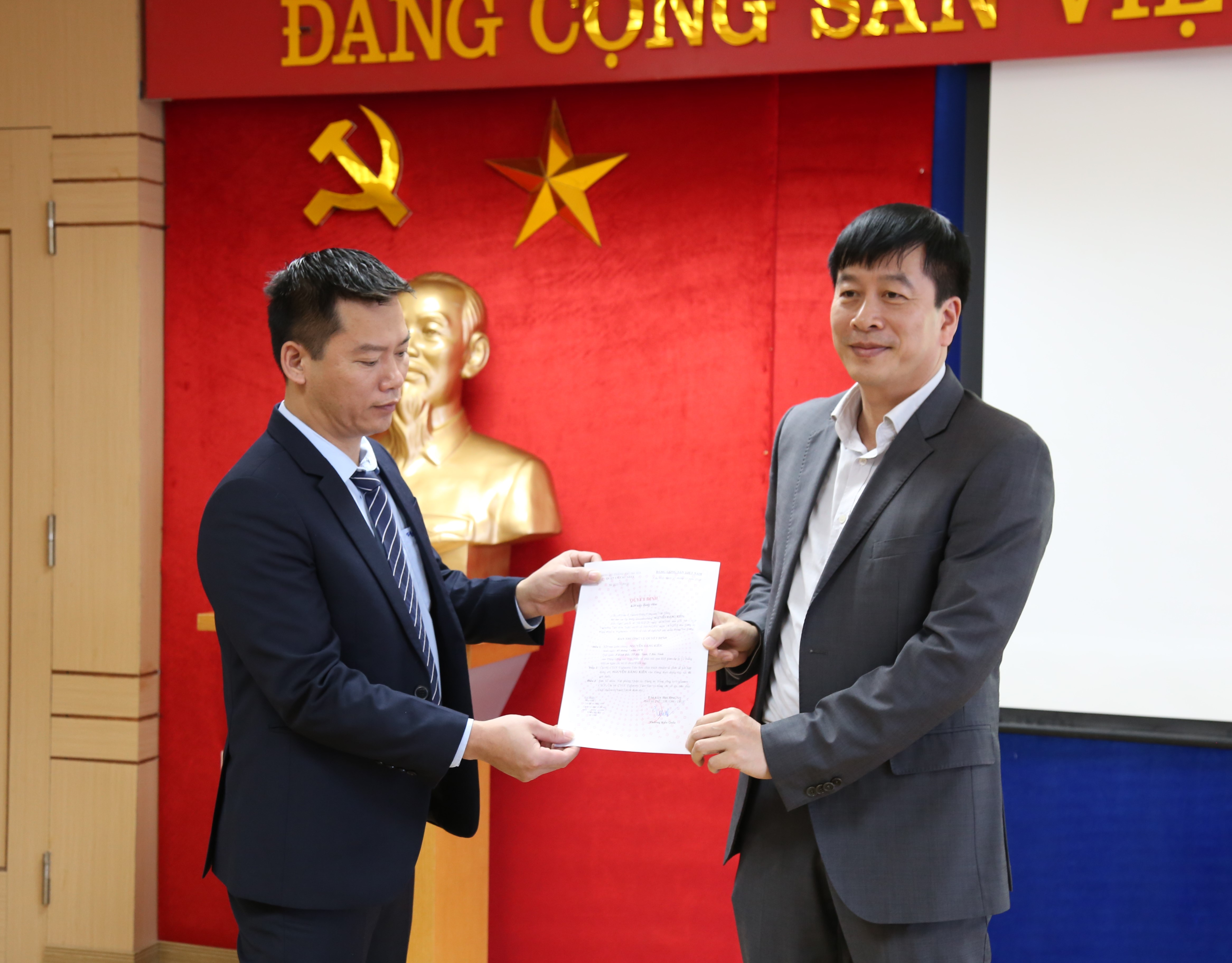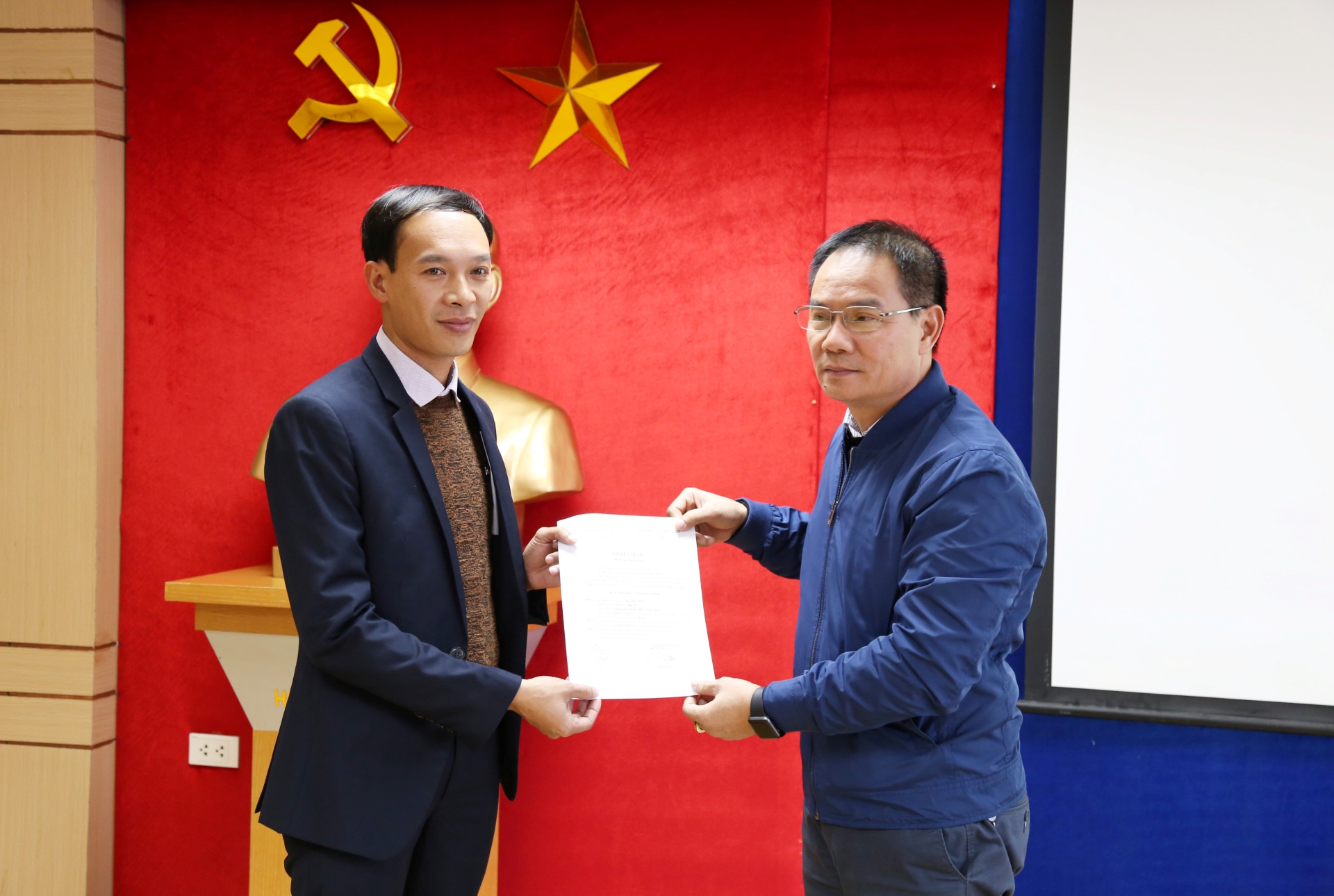 Đ/c Nguyễn Quý Tuấn - Ủy viên Ban Chấp hành Đảng ủy TCT Viglacera – CTCP trao Quyết định kết nạp đảng viên cho đồng chí Nguyễn Đăng Kiên