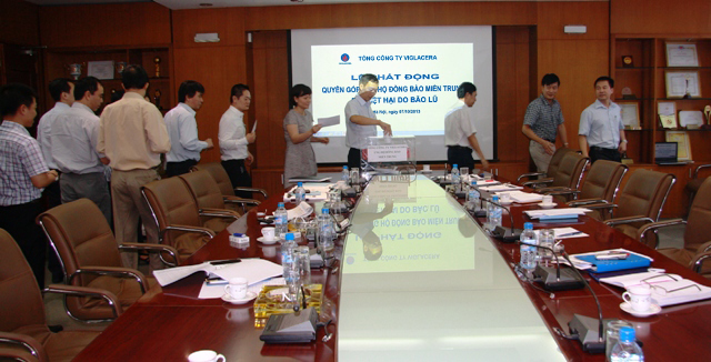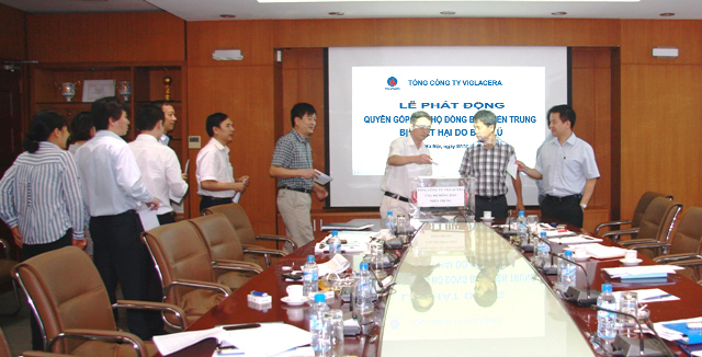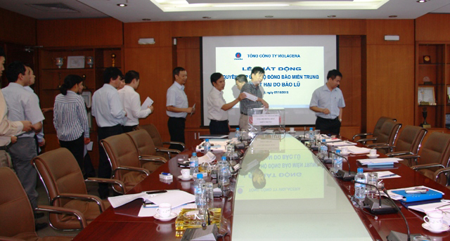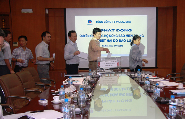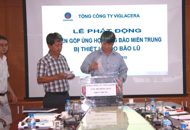 Cũng trong sáng nay, hưởng ứng lời kêu gọi của Ủy ban Trung ương Mặt trận Tổ quốc Việt Nam cùng chung tay ủng hộ đồng bào các tỉnh miền Trung bị thiệt hại nặng nề về người và tài sản do cơn bão số 10 gây ra, góp phần chia sẻ những khó khăn, mất mát, với tinh thần "tương thân, tương ái" TCT Viglacera đã tổ chức phát động CBCNV quyên góp ủng hộ đồng bào miền Trung khắc phục thiệt hại. Đồng chí Nguyễn Anh Tuấn Bí thư Đảng ủy TCT và toàn thể CBCNV TCT đã tham gia ủng hộ mỗi người ít nhất 1 ngày lương, giúp đồng bào miền Trung nhanh chóng ổn định cuộc sống .