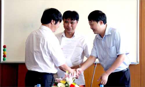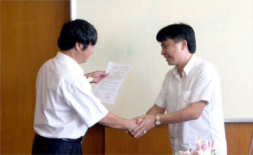 Đồng chí Luyện Công Minh trao Quyết định cho đồng chí Nguyễn Anh Tuấn