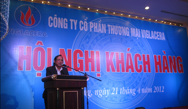 Mở đầu hội nghị, Ông Nguyễn Văn Lý – Giám đốc Công ty CP Thương mại Viglacera gửi tới toàn thể các bạn hàng lời tri ân và lời cảm ơn chân thành nhất vì sự ủng hộ và tin tưởng vào sản phẩm sứ vệ sinh – sen vòi Viglacera đồng thời phát biểu định hướng kinh doanh sản phẩm sứ - sen vòi Viglacera năm 2012 và những năm tiếp theo.