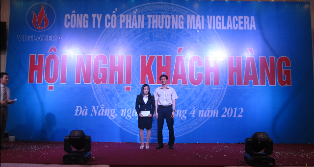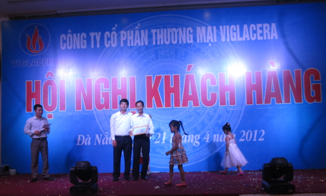 Nhằm bày tỏ sự cảm ơn sâu sắc tới các bạn hàng đã và đang ủng hộ sản phẩm sứ vệ sinh – sen vòi Viglacera, Công ty CP Thương mại Viglacera tiến hành trao thưởng bằng hiện vật Tổng kết chương trình bán hàng Quý I/2012 trị giá từ 3 triệu đồng đến 15 triệu đồng cho 08 khách hàng tiêu biểu trong tiêu thụ sứ vệ sinh – sen vòi Viglacera năm 2011 tại TP Đà Nẵng.