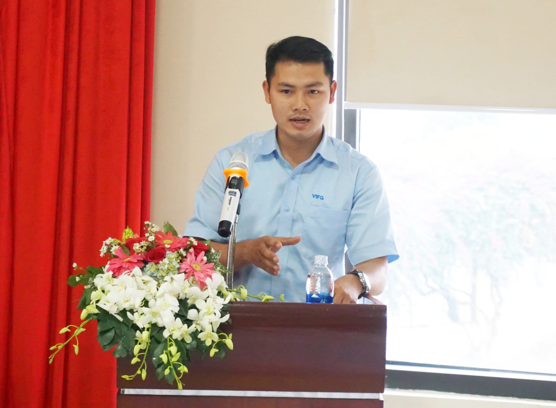 Ông Nguyễn Minh Khoa – Giám đốc Công ty Kính nổi Viglacera báo cáo tại Hội nghị
