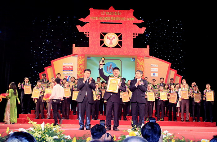 Ông Lê Hồng Phong - Giám đốc Ban Thương Mại nhận Cup Thương hiệu Mạnh Việt Nam
